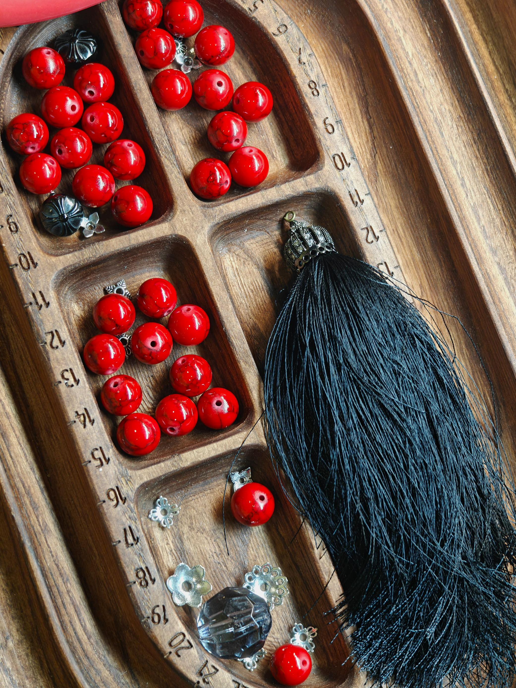 ▫️Камни/бусины/материалы: красный хаулит 10мм, гематит, бисер, акриловые бусины, кисть ручной работы (нить 100% вискоза)